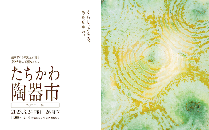 2023年3月24日から26日。東京都立川市 GREEN SPRINGSにて開催される『選りすぐりの窯元が集う 空と大地の工藝マルシェ』に出展します。